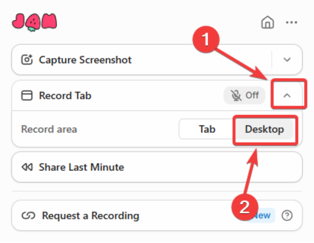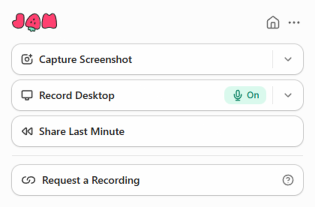 Clique no ícone JAM e em seguida clique no ícone de seta e escolha "Record Desktop".