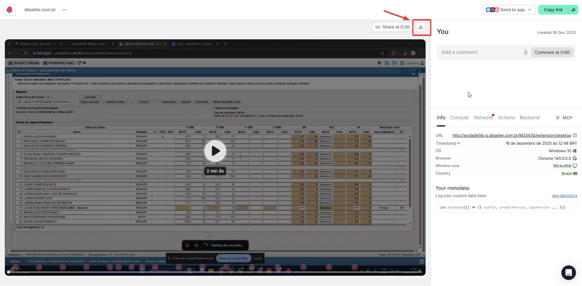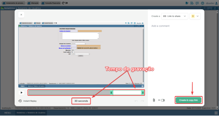 ✔ Anexar o vídeo como evidência em ferramentas externas.