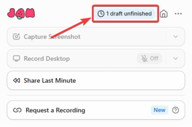 Se um usuário interromper a gravação antes de salvar, o vídeo é armazenado temporariamente na seção "Draft Unfinished".