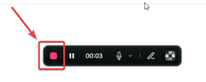 Para interromper, clique novamente no ícone e selecione "Parar Gravação".
