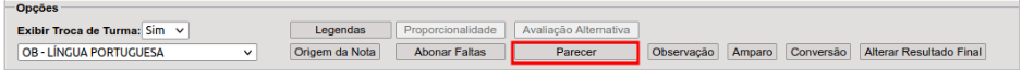 Para realizar o procedimento clique no botão [Parecer], abrirá uma nova tela, conforme a imagem abaixo: