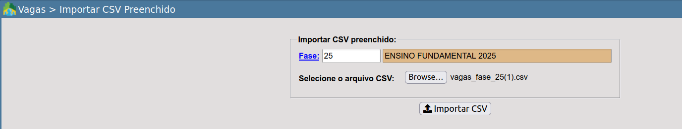 Após preencher o arquivo, acesse o item de menu Importar CSV Preenchido.