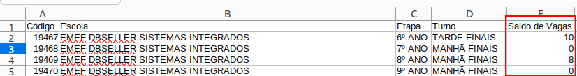 Preencha as vagas no arquivo de acordo com o turno e a etapa em que serão ofertadas.
