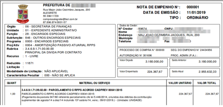 - Valor total do empenho