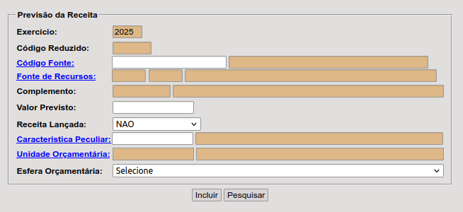 ORÇAMENTO > PROCEDIMENTOS > PREVISÃO DA RECEITA > INCLUSÃO