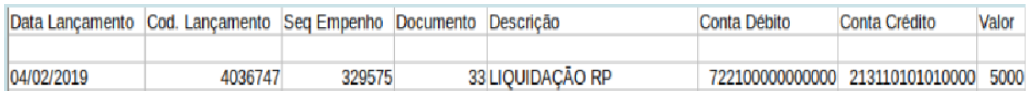 O valor apresentado nos eventos 33 e 39 (diminuindo o valor dos estornos) - liquidação RP, deve ser o mesmo apresentado na coluna “Liquidação” - OK