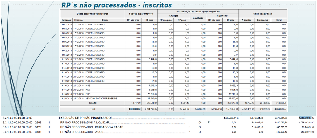 Razão da conta 6311 e 6312 - Para conferir o saldo de RP não processados a liquidar:
