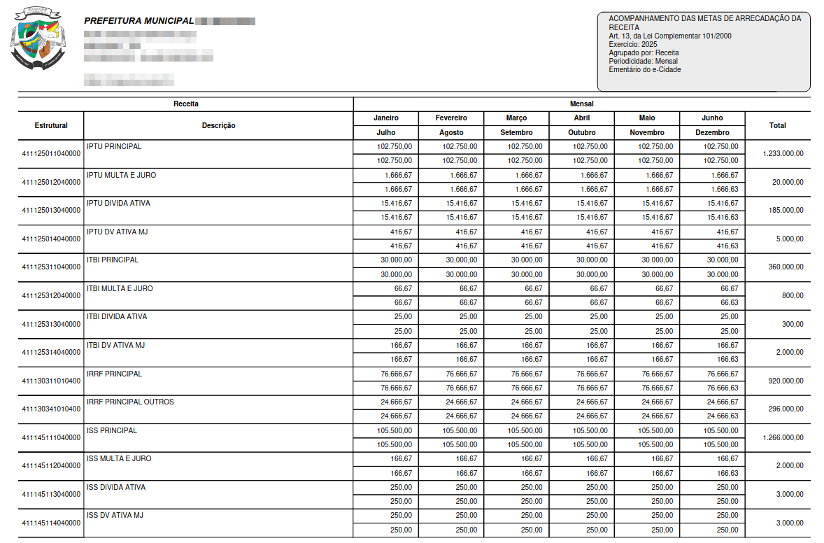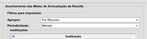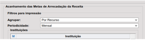 FINANCEIRO > Orçamento > Relatórios > Acompanhamento do Cronograma > Metas de Arrecadação