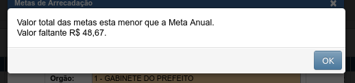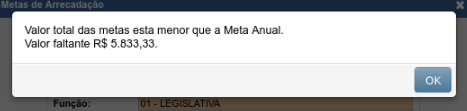 Assim como a receita, o sistema não permitirá salvar o cronograma, sem que os valores estejam fechados com a meta anual: