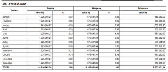 FINANCEIRO > Orçamento > Relatórios > Acompanhamento do Cronograma > Metas de Receita X Cotas de Despesa