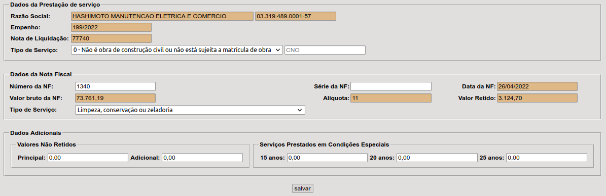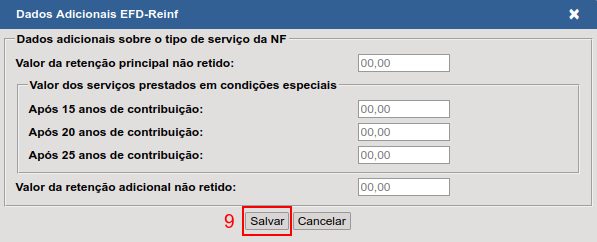 Caso o serviço prestado não possua dados adicionais pule para o próximo passo. |