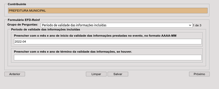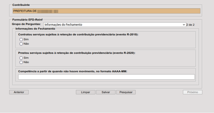 OBS.: O campo Competência a partir de quando não houve movimento, no formato AAAA-MM deve ficar em branco.
