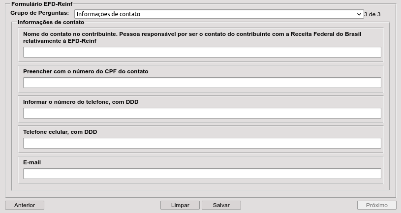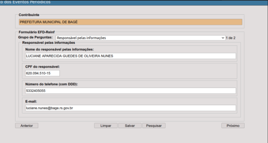 O contato cadastrado passará a receber informações referentes aos envios e inconsistências, desta forma sugerimos que seja informado os dados do responsável pelo envio das informações.