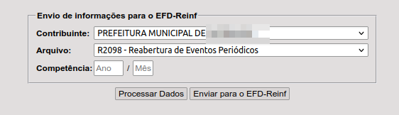INTEGRAÇÕES > EFD-Reinf > Procedimentos > Envio de eventos para o EFD-Reinf