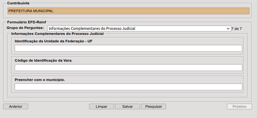 - Selecione o “Grupo de Perguntas”: Informações Complementares do Processo Judicial