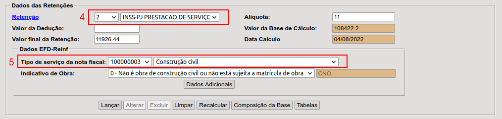 10. Ao finalizar as informações de retenção clique no botão “Lançar”;
