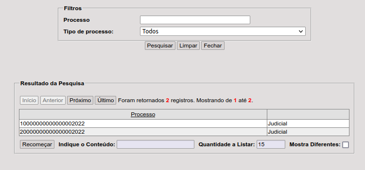- Para incluir um novo processo ou alterar um já preenchido clique em “Pesquisar”