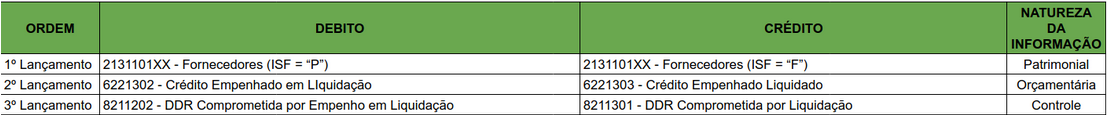 Para a liquidação, o sistema executará também eventos contábeis pelo tipo de empenho: