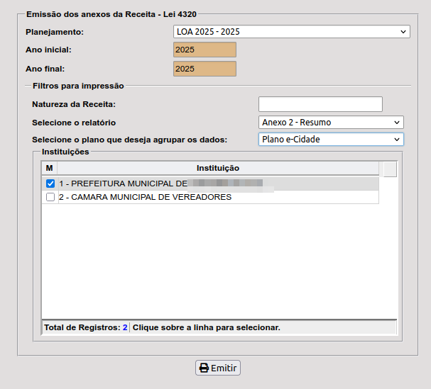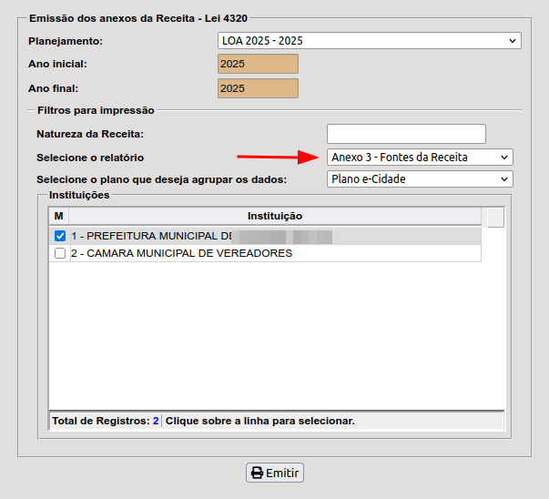 FINANCEIRO > Planejamento > Relatórios > Anexos da lei 4320 > Receita