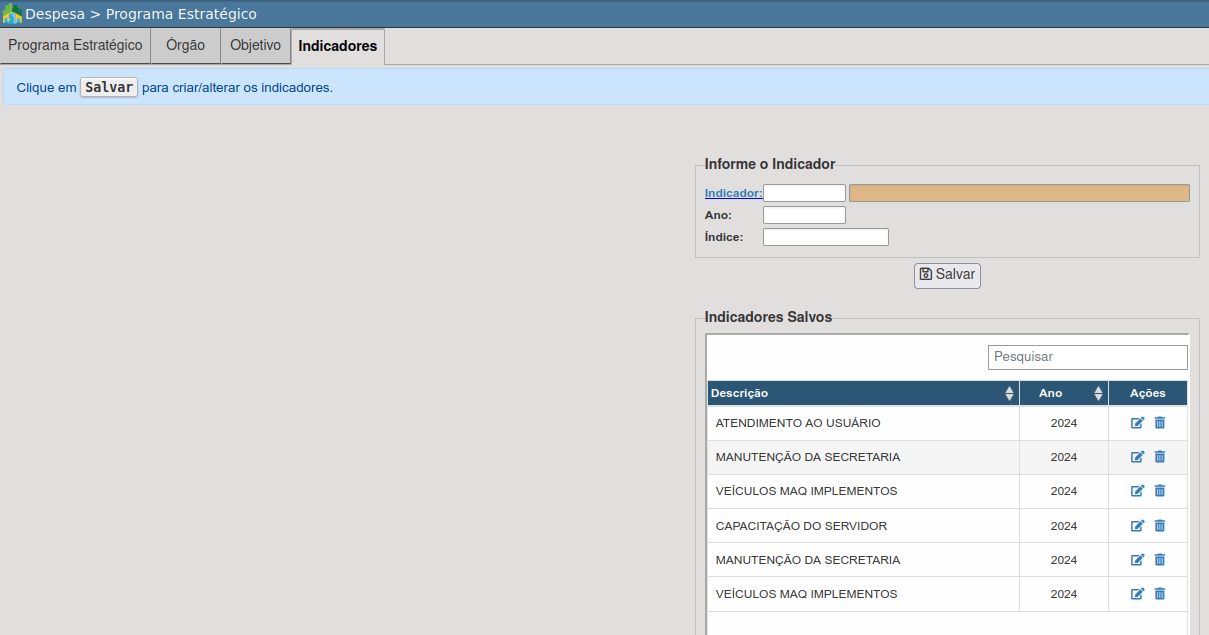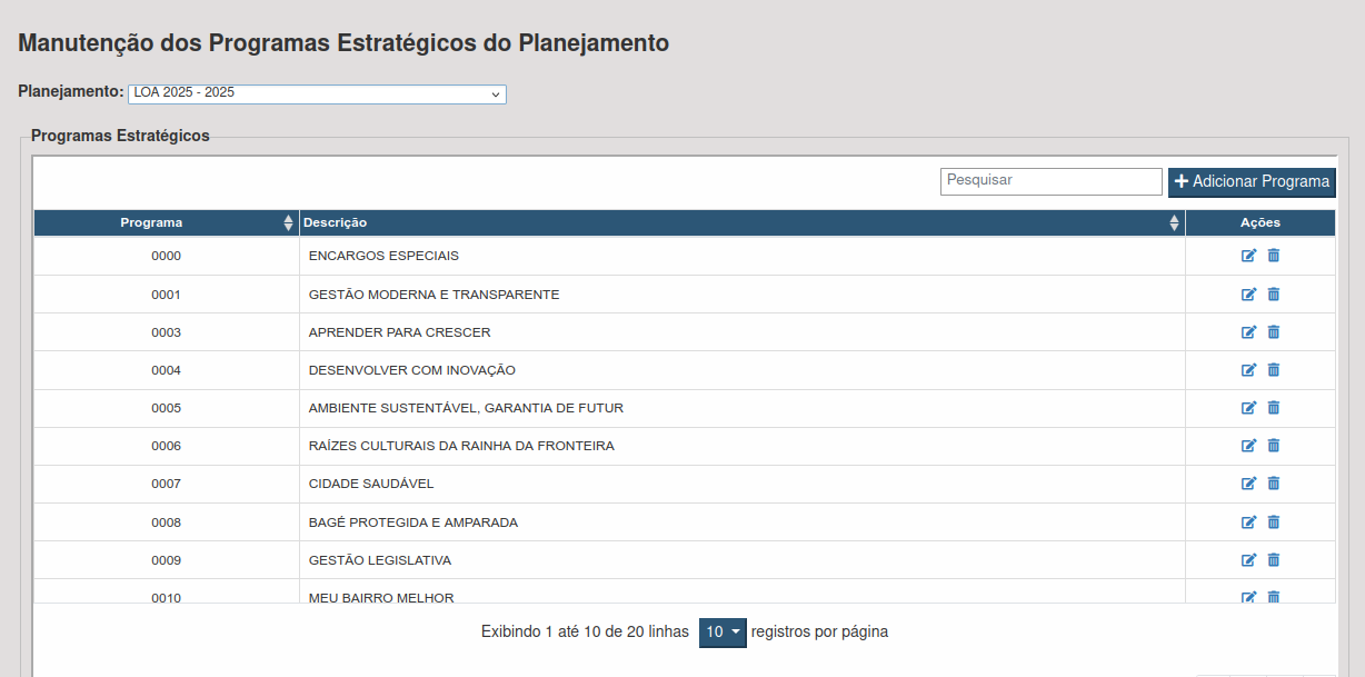 FINANCEIRO > Planejamento > Procedimentos > Manutenção > Despesa > Programa Estratégico