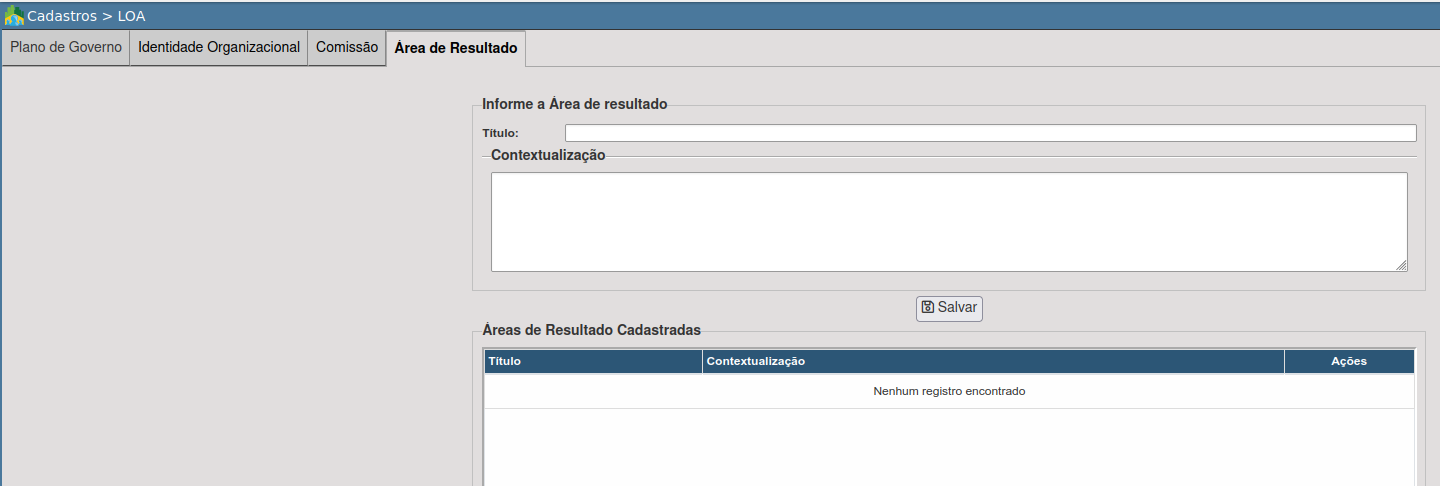 quando informado se utiliza, habilita a aba Área de Resultado para o usuário informar quais áreas de Resultado o Plano de Governo possui.