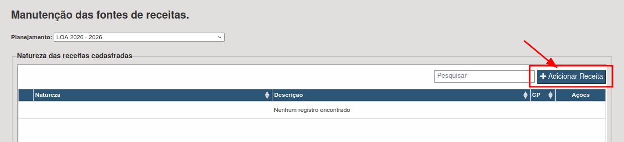 Selecione a LOA em edição e clique em adicionar receita, neste momento o sistema busca o recurso da contabilidade e ficará correto: