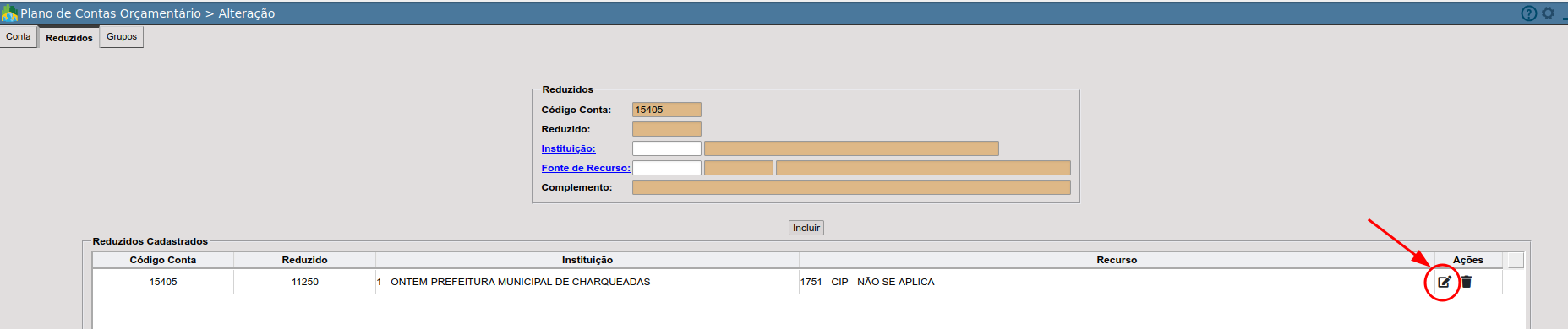 FINANCEIRO > Contabilidade > Cadastros > Plano de Contas Orçamentário > Alteração