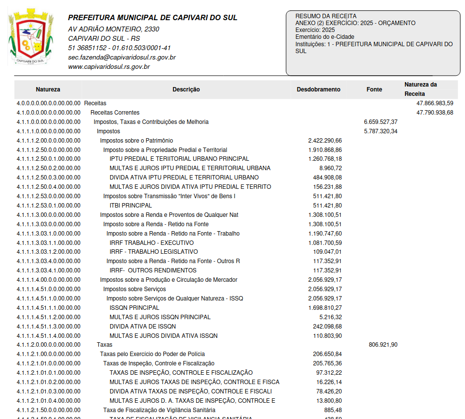 FINANCEIRO > Orçamento > Relatórios > Anexos > Resumo da Receita Anexo 2 a partir de 2023