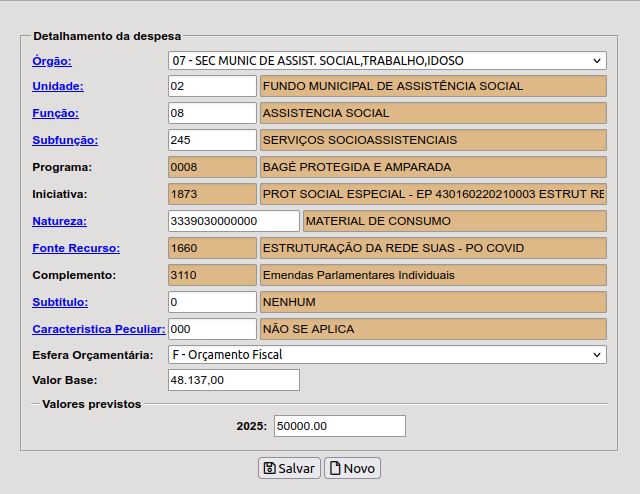 Complemento: É preenchido automaticamente conforme a fonte de recurso;