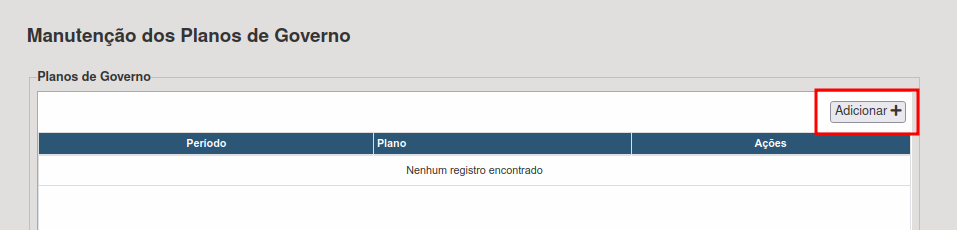 Na inclusão do plano de governo, o sistema automaticamente preenche o ano inicial e o ano final do plano.