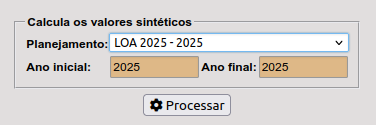 FINANCEIRO > Planejamento > Procedimentos > Manutenção > Despesa > Calcular Valores Sintéticos