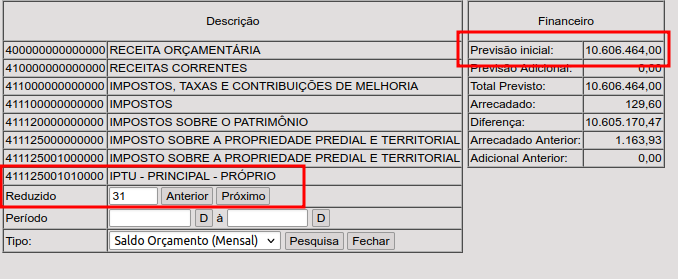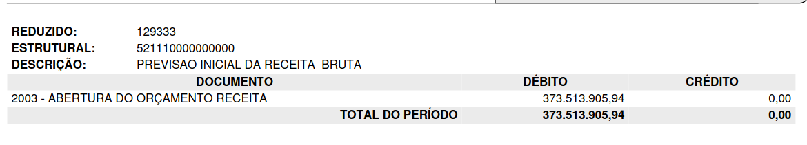Ao clicar na âncora de receita, o sistema mostra a sua previsão inicial e demais valores e o estrutural da receita: