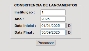 FINANCEIRO > Contabilidade > Consultas > Auditoria > CONSISTENCIA DE LANÇAMENTOS