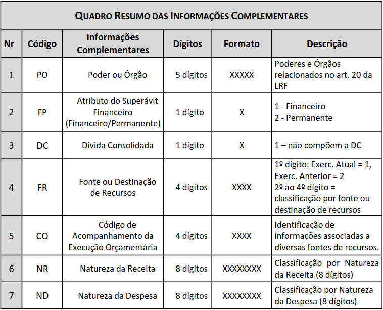 Já o Anexo II, contempla toda a parte dos planos de contas PCASP, NDs (naturezas de despesa) e NRs (naturezas de receita), as informações complementares de cada conta contábil, as fontes de recursos e suas explicações.