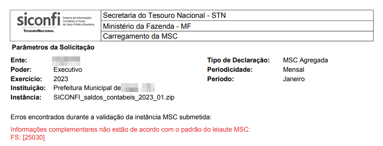 Aqui serão listados alguns erros que já apresentaram no site da STN no carregamento da MSC.
