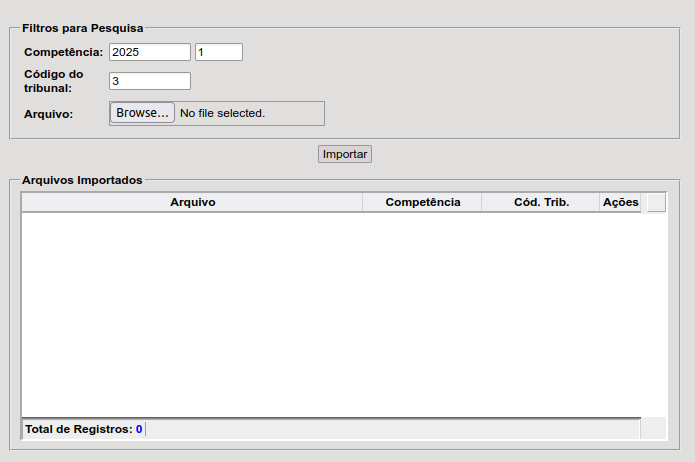 Código do Tribunal: preencher com o código da Instituição conforme o cadastro no E-cidade;