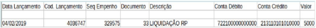 Aqui está um exemplo de erro de contabilização, onde o sistema executou o lançamento do grupo 7 contra o grupo 2: