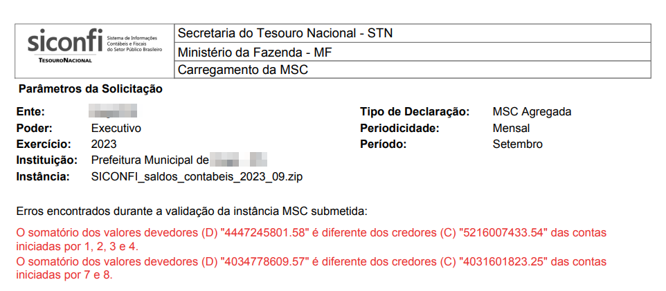 Após a correção, gere a MSC novamente e a importe no Siconfi.