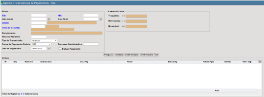 FINANCEIRO > Tesouraria > Procedimentos > Agenda > Manutencao de Pagamentos - Slip