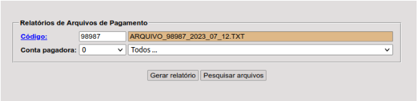 Selecionar o número do arquivo já gerado no e-Cidade e gerar relatório: