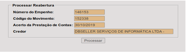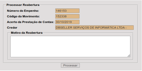 EMPENHOS > PROCEDIMENTOS > PRESTAÇÃO DE CONTAS > CONFERÊNCIA > REABERTURA