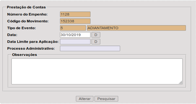 Neste momento o sistema executará o evento 414 - PRESTAÇÃO DE CONTAS SUP. DE FUNDOS