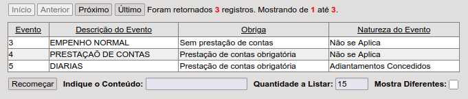 1) EMPENHOS > CADASTRO > TIPOS DE EVENTO > ALTERAÇÃO