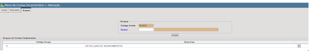 FINANCEIRO > Contabilidade > Cadastros > Plano de Contas Orçamentário > Alteração