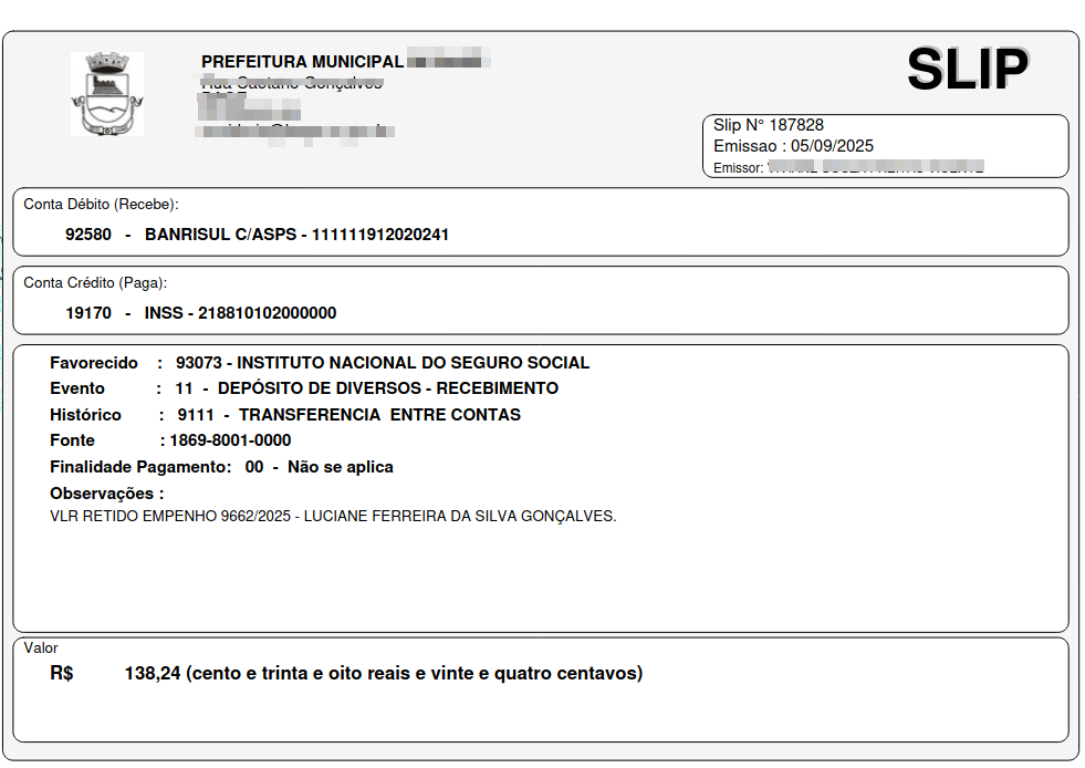 FINANCEIRO > Empenho > Relatórios > Documentos > Reemissão de Relatório de SLIP