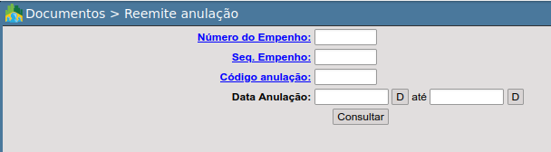 FINANCEIRO > Empenho > Relatórios > Documentos > Reemite anulação
