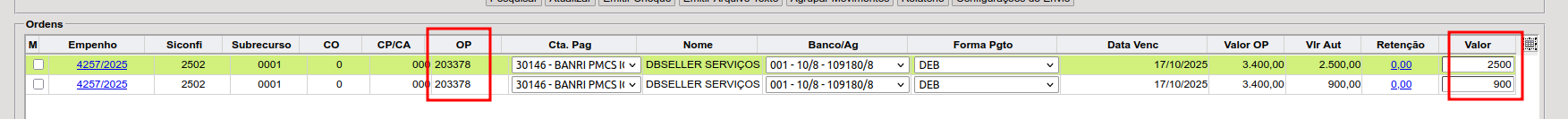 Quando uma mesma OP é paga em mais de um movimento (ou seja, um pagamento parcial) pode emitir o valor por movimento pago: