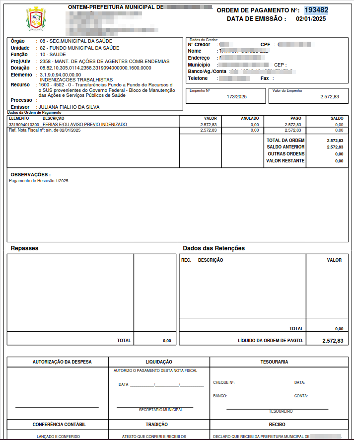 EMISSÃO DE ORDEM DE PAGAMENTO