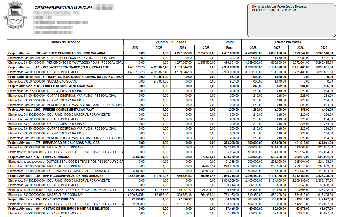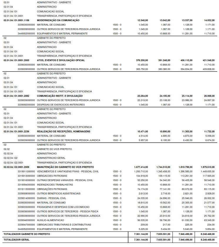 Os relatórios demonstrados a seguir, podem ser emitidos para qualquer plano de Governo, seja ele PPA, LDO ou LOA, a diferença será o layout dos valores, que serão 4 anos, 3 anos e 1 ano, respectivamente.