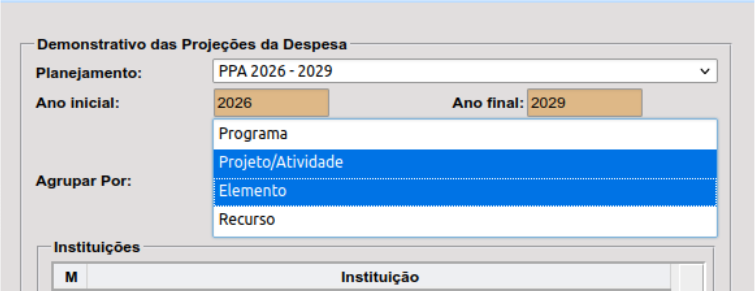 Emissão do Demonstrativo de Projeções da despesa com agrupamentos